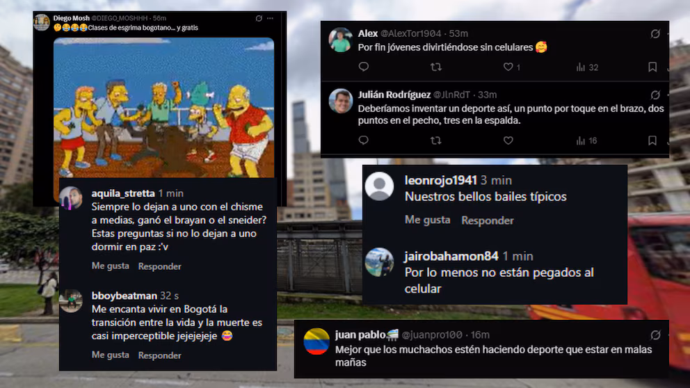 En la publicación, los administradores describieron la escena como una “esgrima en las calles bogotanas”.