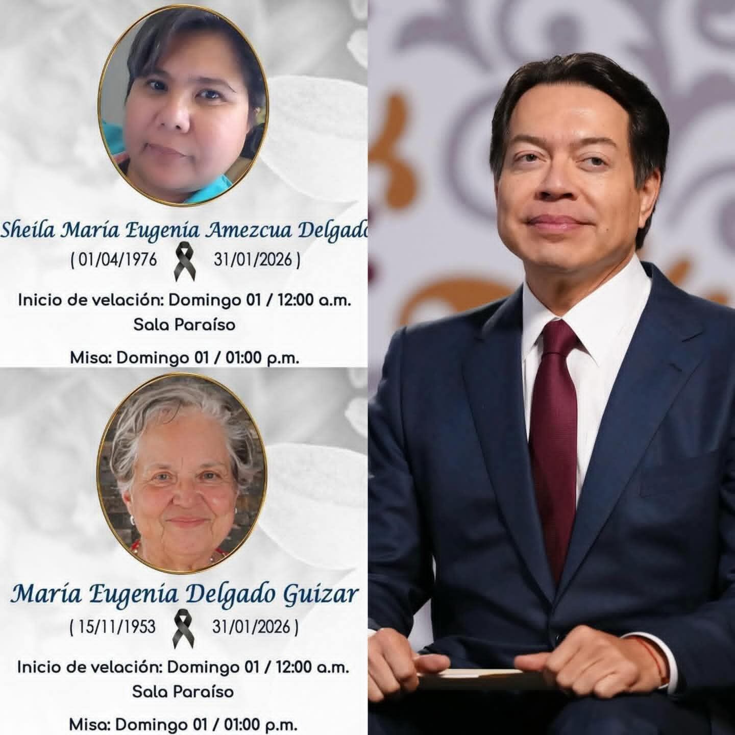 Las víctimas fueron identificadas como Sheila María Eugenia Amezcua Delgado, de 49 años, y María Eugenia Delgado Guizar, de 72 años, prima y tía del funcionario federal, respectivamente.