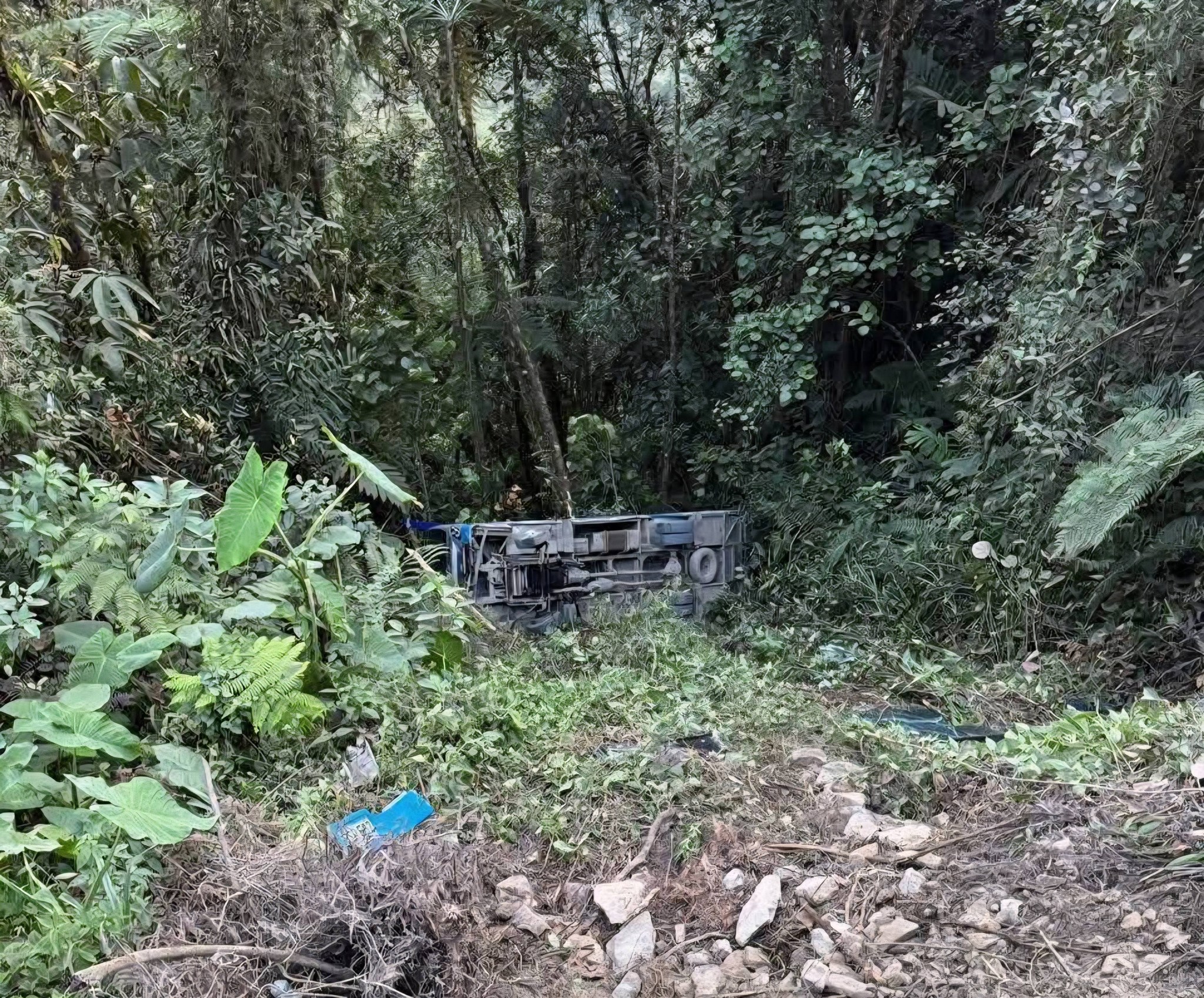 De acuerdo con la información conocida, la buseta se salió de la carretera y cayó a un abismo de aproximadamente 25 metros.