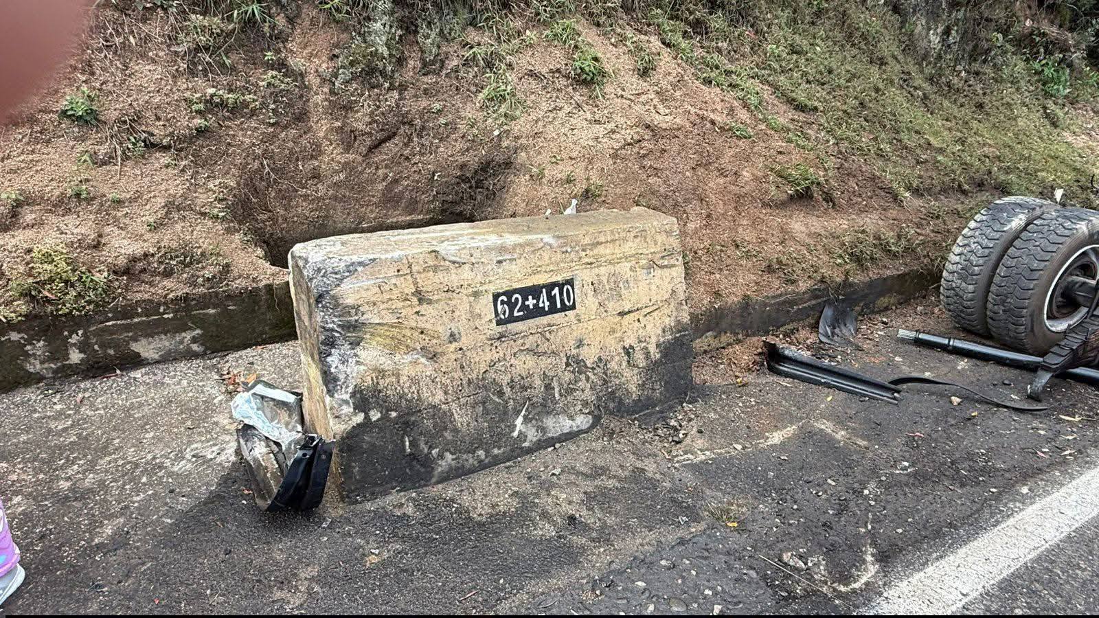 Tras el impacto, el camión quedó volcado sobre su costado derecho. Varias de sus llantas se desprendieron y el tren delantero terminó separado del resto de la estructura.