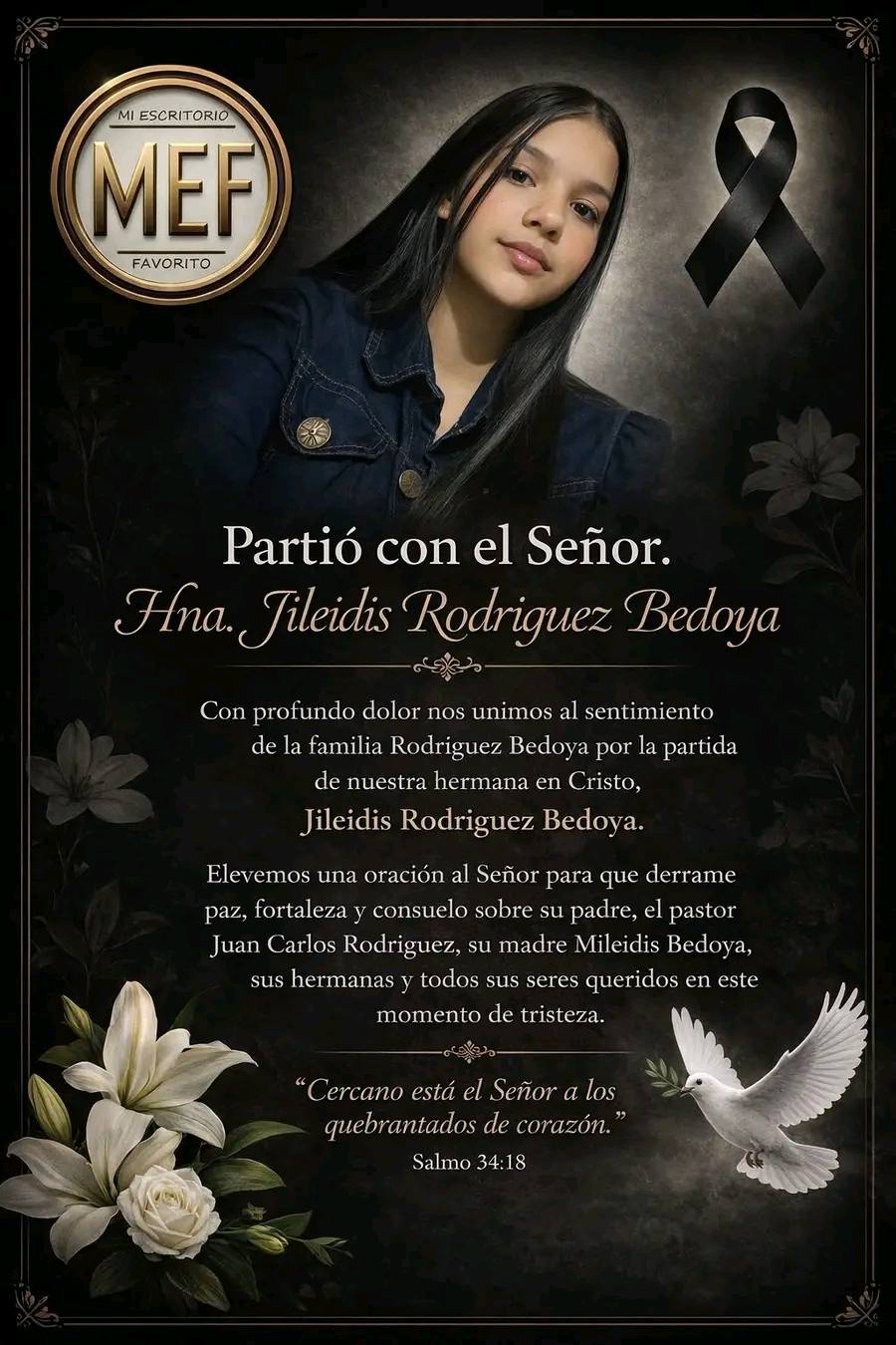 La joven era hija del pastor Juan Carlos Rodríguez, líder de la sede El Moderno, quien hoy enfrenta este difícil momento junto a sus seres queridos.