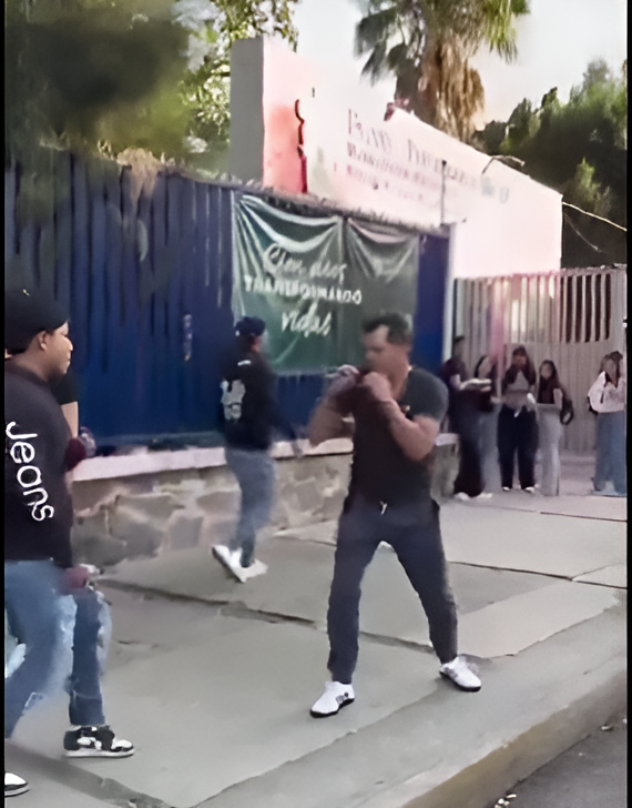 Minutos más tarde, el hombre llegó al lugar con la intención de enfrentar al estudiante que había peleado con su hijo.