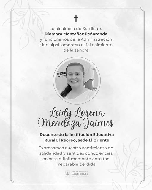 La Institución Educativa El Recreo de Sardinata atraviesa momentos de profunda tristeza tras la noticia.