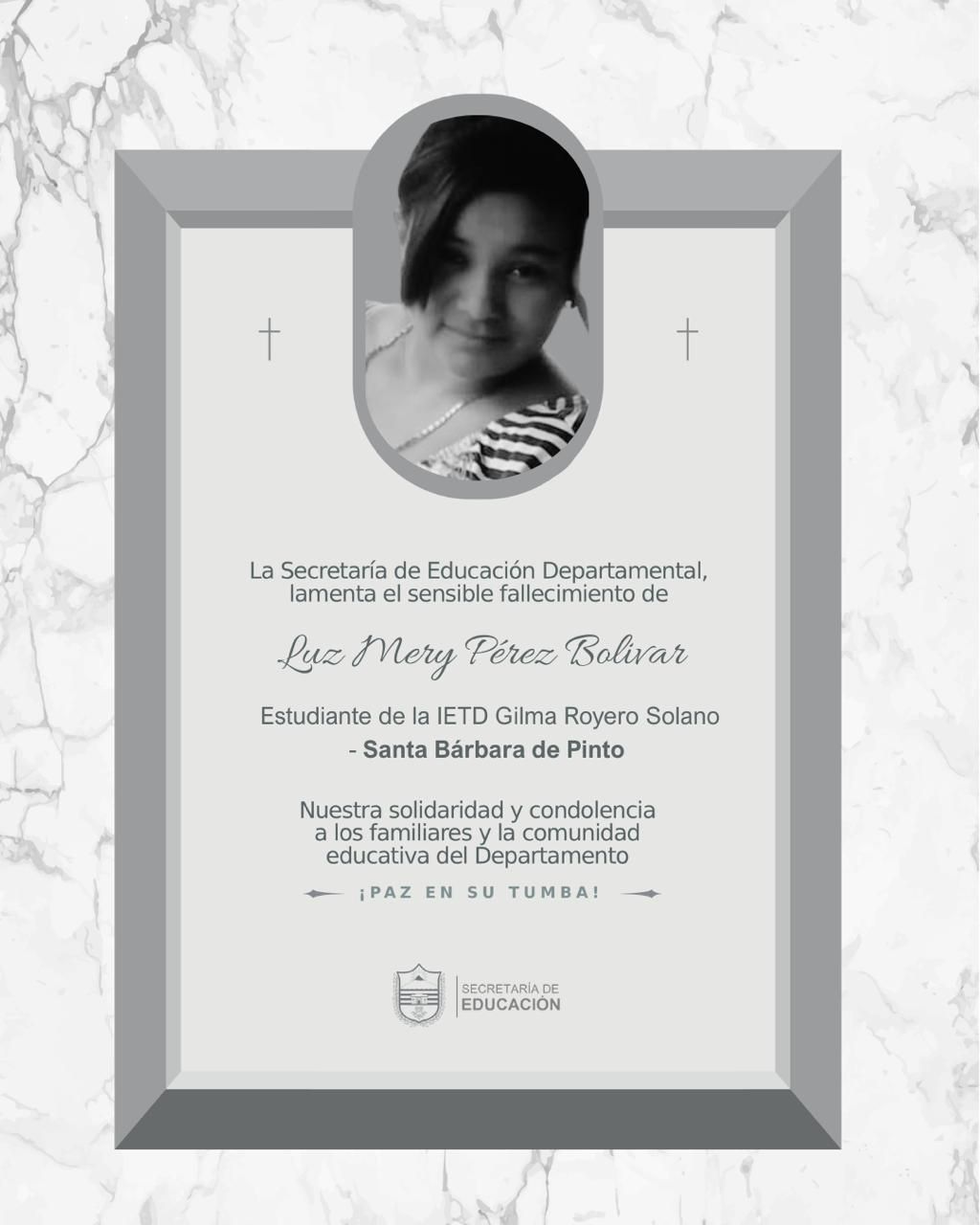Luz Mery Pérez Bolívar era estudiante de grado once en la jornada nocturna de la Institución Educativa Técnica Departamental Gilma Royero Solano, donde era conocida por su alegría, compañerismo y su deseo de superarse.