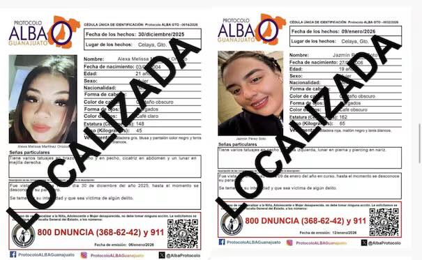 En tanto, Alexa y Jazmín fueron encontradas en la comunidad de La Tinaja, también en el municipio de Juventino Rosas.
