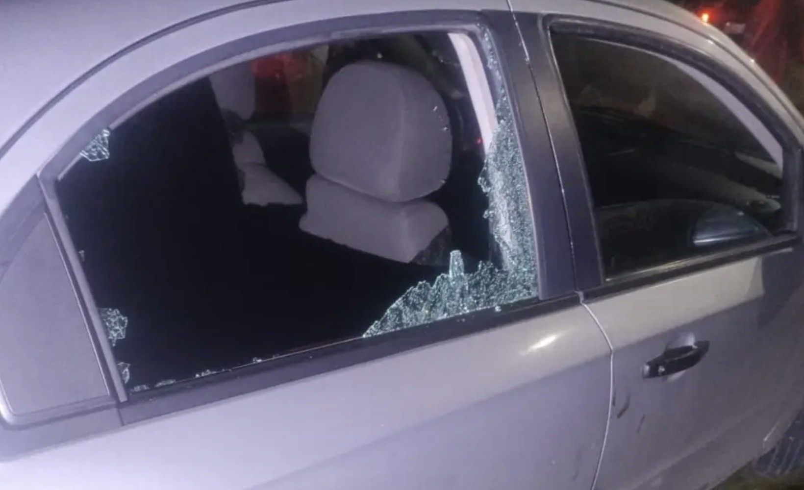 El automóvil quedó con daños visibles en el parabrisas, la puerta trasera y la salpicadera izquierda, evidenciando la intensidad del ataque.